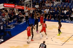 胳膊特长!狄龙翻身跳投不中 马威二次进攻隔人将球“砸扣”进筐