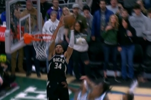 空中轰炸!小波特送抛传 字母哥空接暴扣带队拿回1分领先
