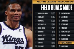 另一里程碑!威少运动战进球数超越帕里什 升至历史第19位