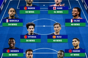 2025年胜场最多阵容:凯恩、奥利塞、阿什拉夫、多纳鲁马在列
