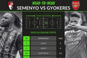 本赛季英超关键数据对比:塞梅尼奥18场9球3助攻 约克雷斯17场5球