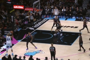 玩起来了!戈贝尔底角投射三分但偏出 两年来首次出手&此前17中0