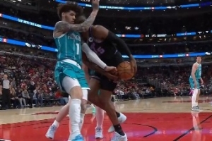 这下撞挺狠!拉梅洛·鲍尔拼抢和史密斯头撞头 史密斯搀回更衣室