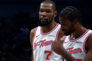 那我上来干嘛?KD顶着4犯上场执行最后一攻 伊森却传给了阿门