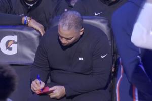 比赛还没开始 赶紧在努努力!泰伦·卢赛前在替补席上奋笔疾书!