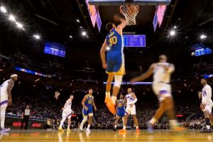 全场笑疯了!库里空切 暴力起飞完成勉扣!