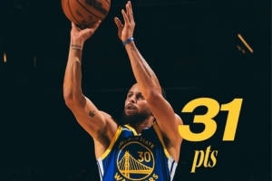 31+5&六记三分!勇士官推发布本场最佳数据海报:库里当选