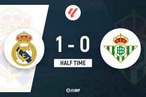 半场-皇马1-0贝蒂斯 贡萨洛西甲首球罗德里戈献助攻+远射造险