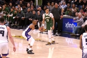 场上不遗余力!威少弧顶积极上抢造成罗林斯回场违例