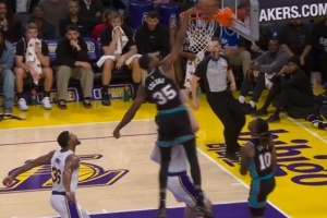 GIF-科洛克追防大帽拉拉维亚上篮被吹干扰球
