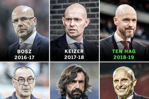 天克主帅德里赫特自进入一线队以来,每个赛季都会换一次教练