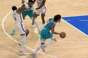 赚!鲍尔突破甩手打到杰伦威被吹进攻犯规 黄蜂挑战变防守犯规