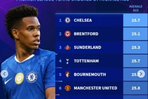 本赛季英超平均年龄最低球队:蓝军23.7岁居首,曼联第6,枪手第9