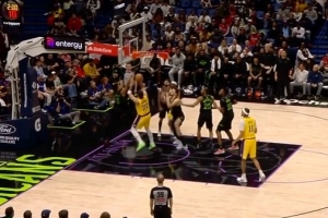冲击力!唐斯强攻内线 对抗防守打进加罚一举扳平比分