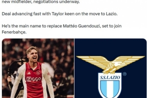 罗马诺:拉齐奥接近签下阿贾克斯中场泰勒,以替代离队的贡多齐