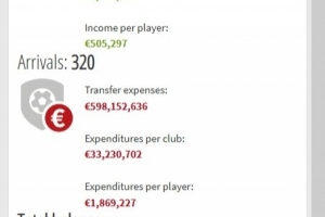 平均到每俱乐部的差额:-2570.739万欧元