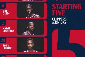哈登复出!快船VS尼克斯首发:哈登、邓恩、小卡、科林斯、祖巴茨
