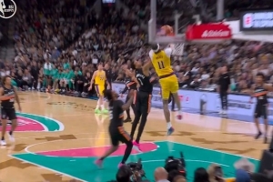 神了啊!斯玛特突破失去节奏迎着防守调高弧顶依旧命中跳投