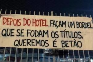 据《记录报》报道,球迷对葡联杯被淘汰感到不满和愤怒,约30名本菲卡球迷特意赶到球队主场光明球场外等待,并举横幅怒骂球队管理层:“开完酒店之后,咱们再开个妓院吧。去TM的冠军,我们只要混凝土。”