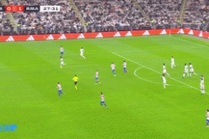 比赛第28分钟,卡雷拉斯右路的积极逼抢创造出了一个好机会,罗德里戈插上到了禁区内,扣过防守但随后的射门被奥布拉克扑出!