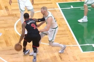别再伤了呀!巴雷特反击踩到豪泽崴脚受伤 返回更衣室