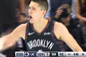 拼劲十足!杰明外线开火连中三分 帮助篮网缩小分差打停快船
