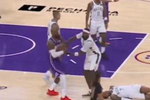 詹姆斯进攻犯规正疑惑 波蒂斯身后杀出欲夺球!前者将其一把甩开