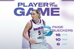 佩奇·布克斯出场17.3分钟,14投7中,三分3中0,罚球1中1,拿到16分10板6助1封盖。她同时命中了最后达标分数的一球。