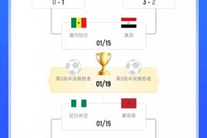 体育资讯01月11日讯 非洲杯1/4决赛战罢,本届赛事四强全部确定:塞内加尔、摩洛哥、尼日利亚、埃及。半决赛将在1月15日开战,具体赛程如下:
