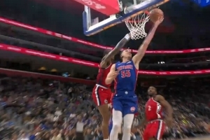 被压制了!哈登单挑上篮遭钉板大帽 快船被活塞打了一波11-0