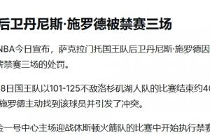 体育资讯01月11日讯 NBA官方宣布,对国王球员施罗德进行无薪禁赛三场的处罚。