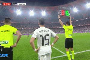 皇马也做出换人调整,居莱尔换下巴尔韦德