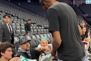 暖心阿杜!杜兰特赛前为众多球迷签名 球鞋球衣合影应有尽有