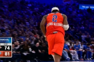 5中0之后11中10了!亚历山大干拔三分飚中 半节内两度打停热火