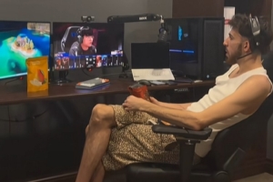 惬意~切特抖音晒双屏观看lol比赛直播视频:Li. Xianghe niu bee