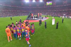记者透露,皇马方面表示是西班牙足协人士要求他们离开颁奖现场的区域,因为他们挡住了摄像机的镜头,因此他们没有为巴萨列队。