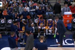 GIF-约基奇西装革履声情并茂指点掘金替补席 皮克特频频点头