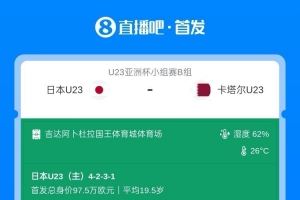 日本U23目前两战全胜进8球0失球排在B组第一,卡塔尔U23两战皆负0进球丢3球小组垫底。