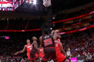 血亏!双方争抢篮板出界判公牛球权 火箭挑战失败&补吹亚当斯犯规