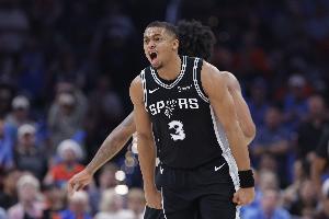 上半场比赛,马刺球员凯尔登·约翰逊手感一般,在外线频频打铁;他出战11分钟,7投2中,三分4投0中,得到4分1篮板,正负值-7。
