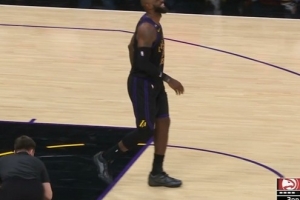 老将不容易啊!詹姆斯上篮落地右脚不适 一瘸一拐仍在坚持