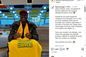 而现在,塞内加尔航空表示他们已经找到了这位名叫萨利乌·恩迪亚耶的球迷,公司在官方Instagram写道:“他装备了球迷套装,包括一条围巾、一件T恤、一顶帽子以及国旗颜色的手环,已准备飞往丹吉尔,在激情与遵守规则的前提下,为我们的国家队加油助威。因为支持自己的球队,首先就是分享积极的能量,庆祝足球运动,并高举塞内加尔的旗帜。”