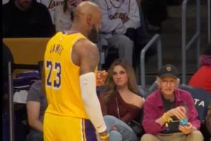 秒变嫌弃脸!美媒放大场边镜头:女球迷被詹姆斯抠鼻子恶心到了