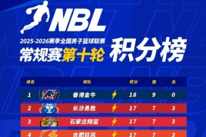 【积分榜】2025-2026赛季NBL常规赛积分榜(截至第十轮结束)