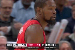 还得你来!杜兰特弧顶出手 飙中火箭全队首记三分