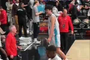 半场两双!杨瀚森打得挺开心 离场前对着球迷微微一笑