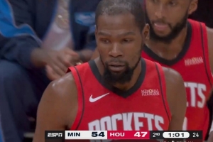 苦苦支撑!杜兰特反击急停后仰 迎着防守强投打成2+1