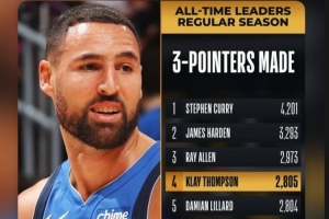 克莱三分命中数超越利拉德&上升至历史第四!库里祝贺:耶 杀手!