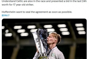 霍芬海姆并不是唯一的追求者,过去24小时,凯尔特人也为这名爱尔兰天才小将送上报价。在这样的情况下,霍芬海姆希望尽快达成协议。