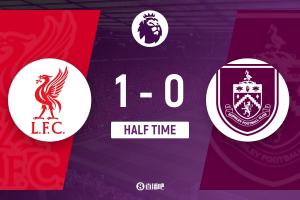 半场-维尔茨破门索博点射中框加克波造点 利物浦1-0领先伯恩利